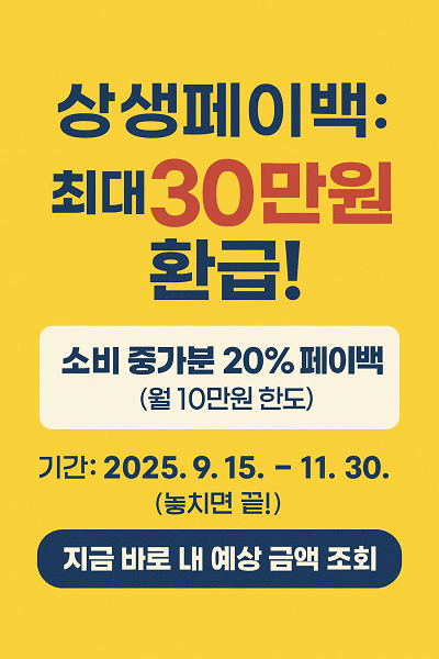 👉 2025년 상생페이백은 소비 증가분의 20%를 최대 30만 원까지 돌려주는 제도입니다.